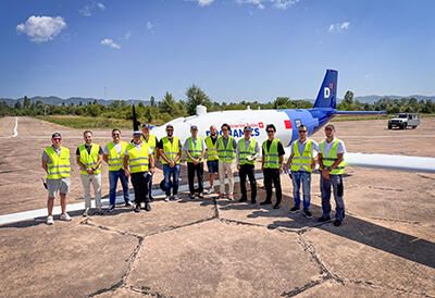 カワサキモータースおよびDronamicsのチームメンバーと「Black Swan」(プレスリリースより引用)