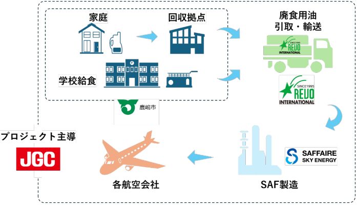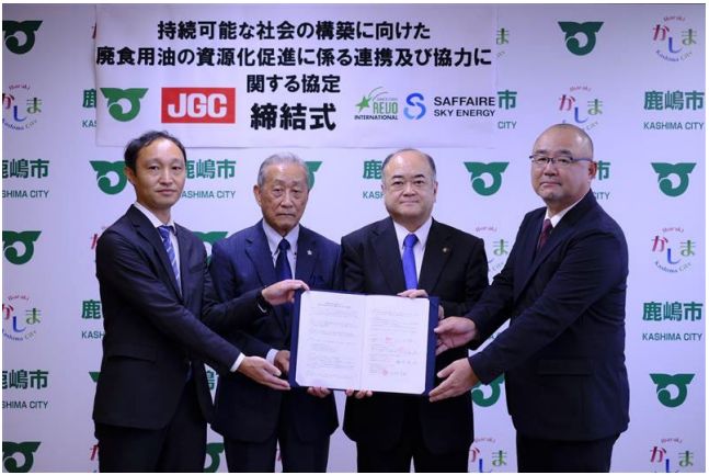 日揮ホールディングス(HD)とレボインターナショナル、SAFFAIRE SKY ENERGYの3社は9月26日、茨城県鹿嶋市と、環境負荷の低い航空燃料SAFの原料となる使用済み食用油の回収で協力すると発表した。