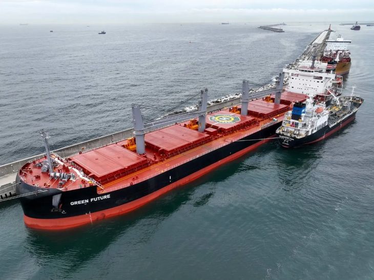 日本郵船は9月30日、グループのNYKバルク・プロジェクトが神原汽船(広島県福山市)から定期傭船するメタノール二元燃料ばら積み船「Green Future」が、9月28日に韓国の蔚山港で燃料の低炭素メタノールを、船舶から直接供給するShip to Ship方式で補給したと発表した。