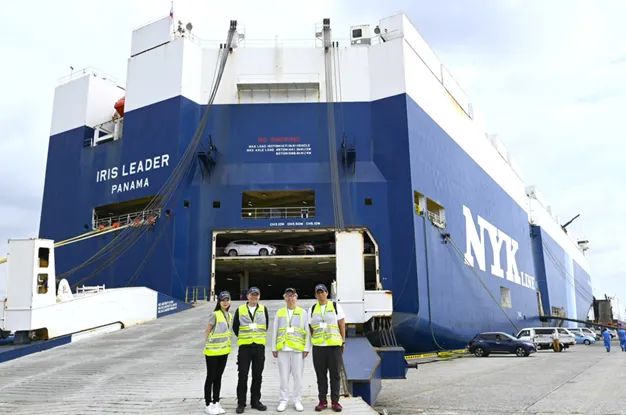MOONRAKERSの西田誠代表取締役(右から2人目)と日本郵船のプロジェクト「感動物流」メンバー