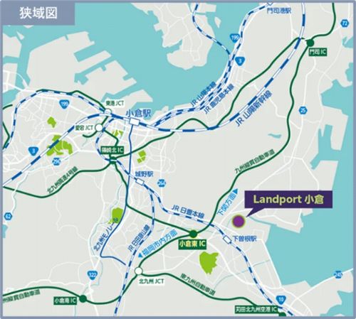 九州自動車道の小倉東IC、北九州高速道路の長野ICまで約2.8㎞に位置し、九州全域・中国地方西部への広域配送も可能。北九州空港まで約15分、新門司港まで約20分、太刀浦コンテナターミナルまで約30分でそれぞれアクセスできる。