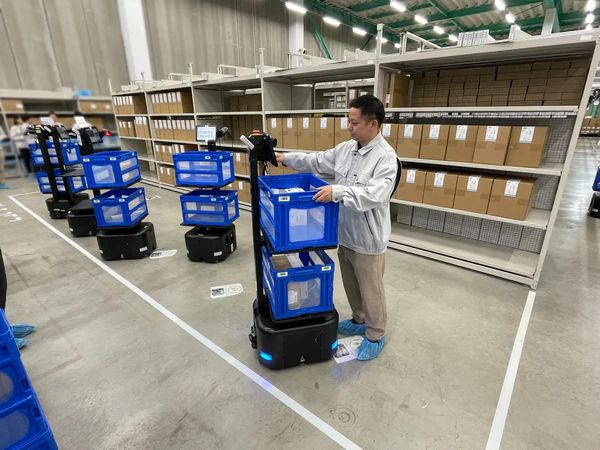 NX小牧流通センターで稼働中の「ラピュタPA-AMR」(ラピュタロボティクス提供)