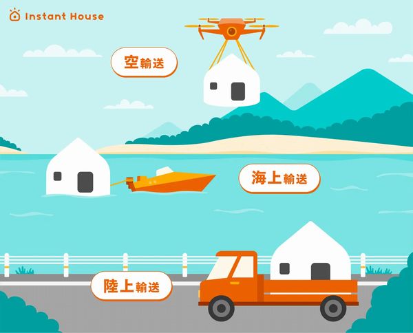LIFULL ArchiTechはこれまで、インスタントハウスをそのまま海に浮かべて船で牽引する海上輸送の実証実験や、分割してトラックで陸上配送できるパージ型の開発にも取り組んできた。今回の実証実験の成功により、空・海・陸上経由での輸送が可能になり、災害支援だけでなく、離島や山小屋など、これまで施工用トラックが到達できなかった場所へ、状況に合わせて最適な手段で輸送することができるようになると想定している。