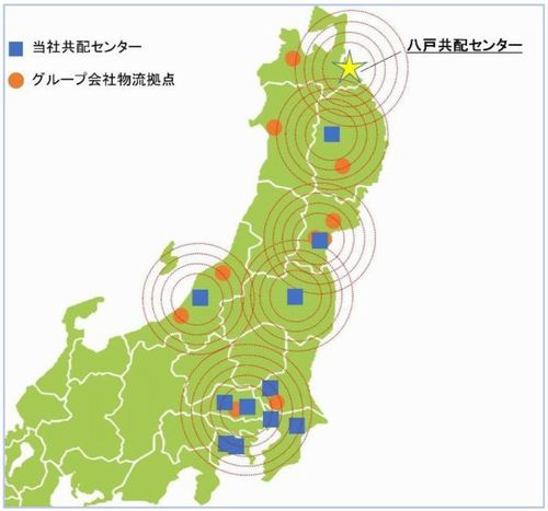 同社は東北エリアで自社拠点の共配センターを岩手・盛岡、仙台、福島・郡山の3カ所に展開している。八戸を追加し、共配網を拡充して自社オペレーションによる東北の共配対応エリアを広げる。
