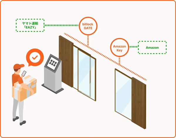 居住者が不在の場合でも、アマゾンジャパンとヤマト運輸「EAZY」が取り扱う荷物を玄関前で置き配することが可能になる。ビットキーによると、分譲マンションへの導入としては国内最大規模という。居住者の利便性向上と再配達負荷軽減をサポートする。