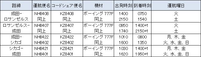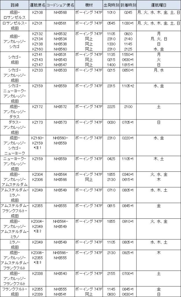 *注1:シカゴ-ニューヨーク間はKZ159(NH3559)として運航