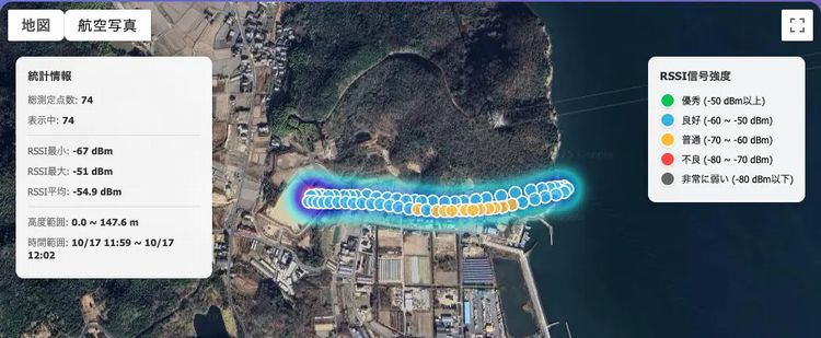 ドローンの長距離飛行は従来の送信機による直接通信に代わり、上空でのLTE(携帯電話網)通信が不可欠となっている。ただ、地上向けに最適化されたLTE基地局の電波は、上空では予測困難な挙動を示すことがあり、事前の電波環境調査なしに安全な飛行ルートを設計することは困難なのが課題となっている。