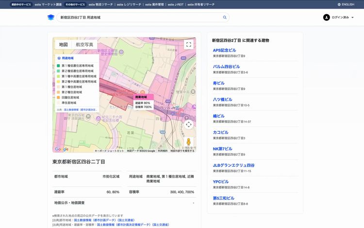 日本最大級の商業用不動産データ分析基盤「estie マーケット調査」を中心に複数のサービスを手掛けているestieは10月27日、商業用不動産業界専門メディア「estie 不動産情報ポータル」で、公共データを検索対象に追加したと発表した。