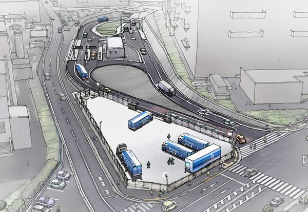 レベル4自動運転トラックによる幹線輸送サービスの開始に際し、高速道路における無人運転と、IC~顧客の各拠点を結ぶ一般道の有人運転を切り替えるためにドライバーがトラックに乗り降りする拠点が必要となり、これまで関東や関西で候補地を探していた。