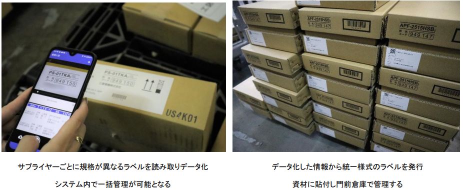 具体的には、現場近くに設置した門前倉庫を活用し、資材を一時保管したう上、必要に応じてユニット化し、ジャストインタイム(JIT)方式で搬入する体制を整備した。新菱冷熱工業が課題としていた現場内の仮置きや仕分け作業を削減し、労務負担の軽減と施工効率の向上を支援する。