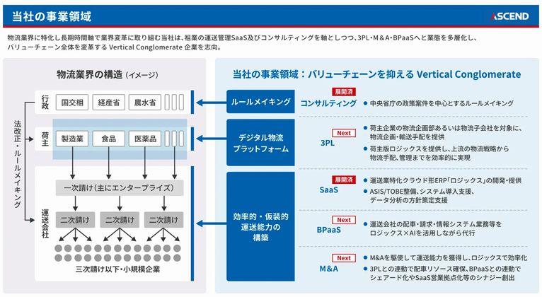 今回調達した資金は22年に始めた運送管理効率化支援サービス「ロジックス」の機能強化などに充てる。サプライチェーン全体の変革を見据えた新規事業の展開も視野に入れている。