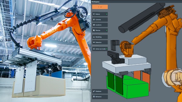 新製品は30分で稼働を開始させられるという。Mujinが提供するWebUI(ブラウザ)上で、レイアウト・構成・ワーク情報・積載パターンを登録すればセットアップが完了。プログラミングやティーチングは一切不要で、専門人員がいない現場でも、短時間でシステムを立ち上げられるよう配慮している。