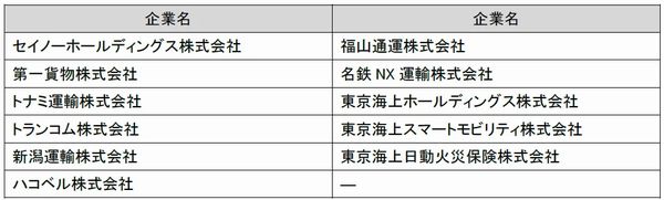 batonにはセイノーホールディングス、第一貨物、トナミ運輸、トランコム、新潟運輸、ハコベル、福山通運、名鉄NX運輸の物流関係8社が参加。東京海上HDのほか、東京海上スマートモビリティ、東京海上日動火災保険も加わっている。