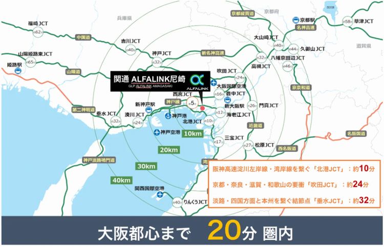 高速道路網を駆使して交通渋滞のリスクを最小限に抑えることを想定。特に大阪・神戸市内への配送に関しては、都市部への円滑な侵入と最適なルート設定が可能になり、配送リードタイムの劇的な短縮と物流コストの徹底的な削減につなげられると見込む。