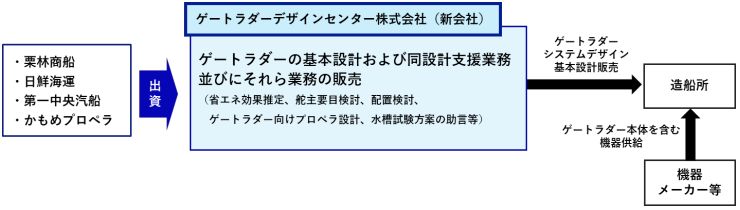 新会社は国内外の船主・造船所等の要望に応じて船種・船型別の最適な船尾形状やプロペラ径の提案などの基本設計業務を造船所から請け負う。ゲートラダーを含めた基本設計をパッケージ化した成果物を造船所に納品する。