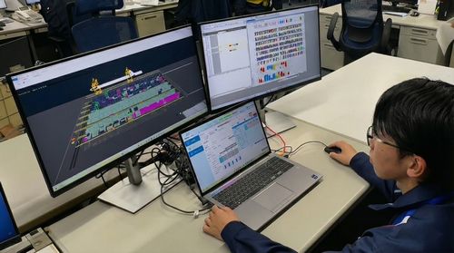 実証風景(AI による荷役前のシミュレータ事前検証)