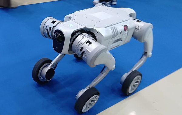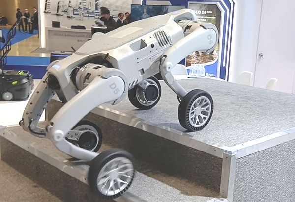 中国の業務用ロボットメーカーPudu Robotics(プードゥ・ロボティクス)は12月3日、東京・有明の東京ビッグサイトで開幕した世界最大規模のロボット専門展示会「2025国際ロボット展(iREX2025)」で、産業用の自律型四足歩行ロボット「PUDU D5シリーズ」をお披露目した。脚式と車輪式の2種類を備えている。