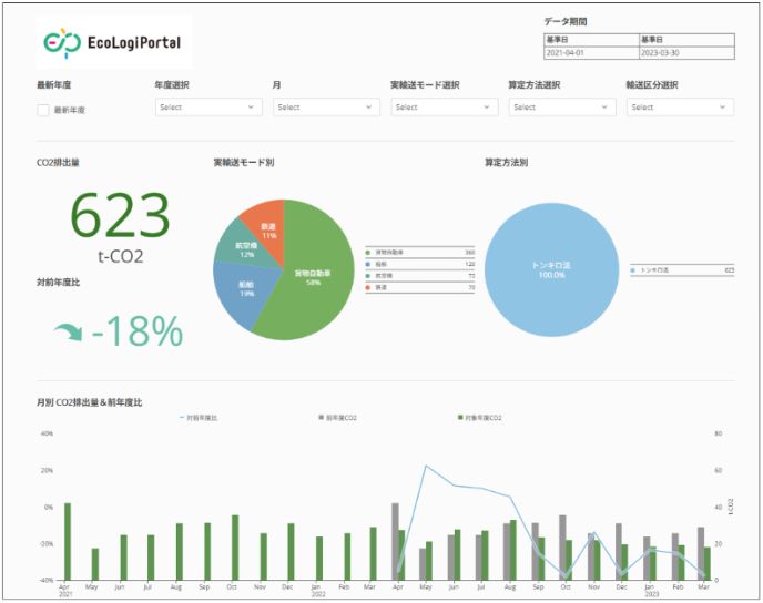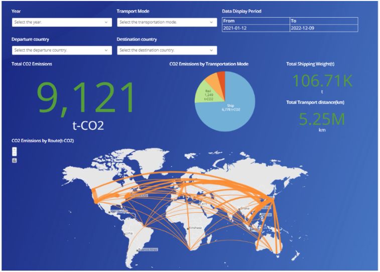 導入した輸送CO2排出量可視化ツール(イメージ)(いずれもプレスリリースより引用)