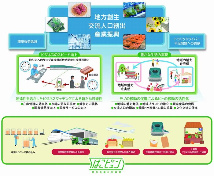 JR東は新幹線や在来線による列車荷物輸送サービス「はこビュン」を展開。新幹線のスピードの速さや定時運行が好評で、生鮮食品や地域の特産品、精密機器などの輸送ニーズを獲得している。今後も需要が見込めるため、対応を強化することにした。