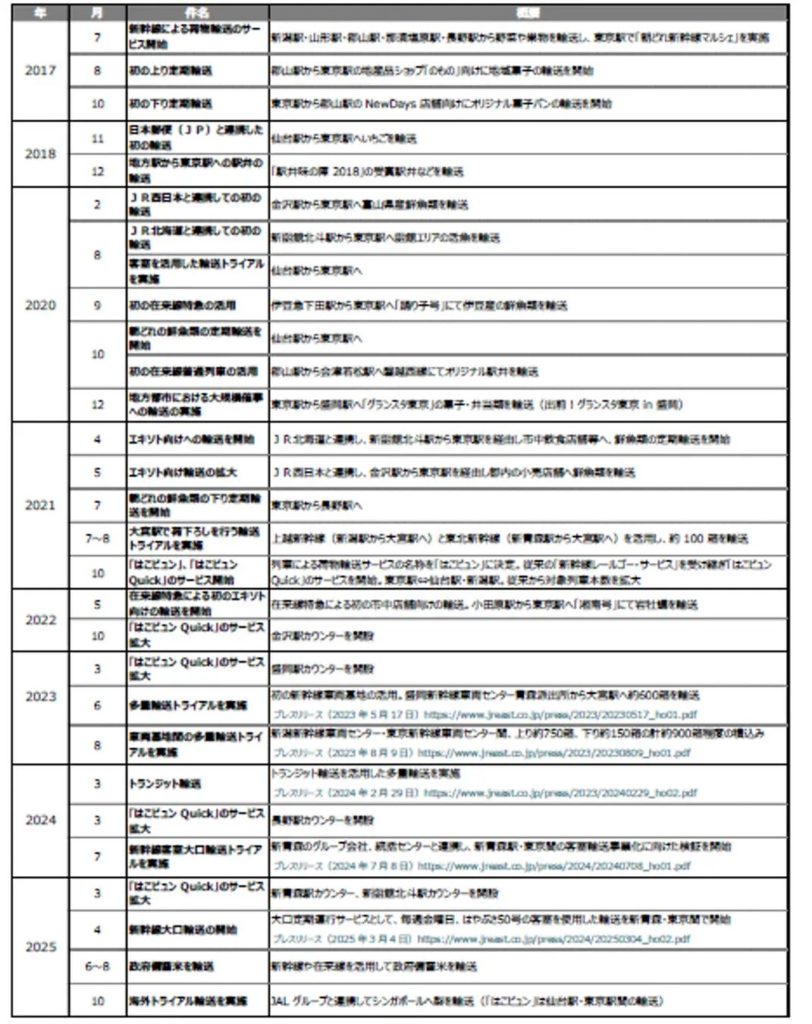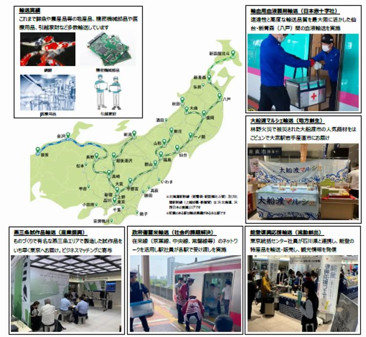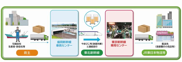 今年4月18日には青森県やヤマト運輸などと組み、毎週金曜日に東北新幹線はやぶさ50号(E5系10両編成)の1号車、2号車を荷物専用車両として新青森~東京間の大口輸送を開始。26年1月23日まで実施している。
