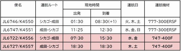 運航スケジュールは対象期間が12月10日から2026年3月28日まで。増便対象はJL6722/K4556, JL6727/K4557。