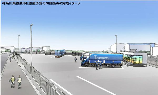 竣工は2026年2月を見込む。T2は既に、国内の物流事業者として初めて神奈川県綾瀬市に同様の切替拠点を設置する方針を公表しており、自動運転トラックによる関東~関西間の幹線輸送体制を確立したい考え。
