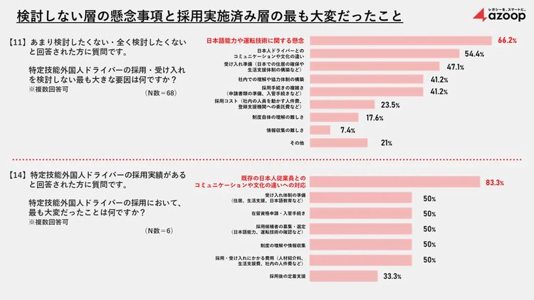 Azoop調査結果、運行の安全性と現場摩擦が懸念材料