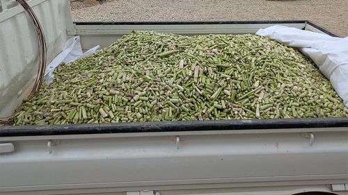 「プロロジスパーク北上金ケ崎」に集まった「アスパラガス」の茎部分