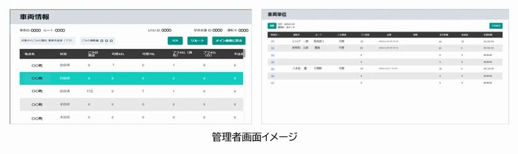 事務所側が送信した応援要請は、即座に車載モニターに掲示。リルート発生時には、現在ルートの残りの収集ポイントと、新たに連絡のあった追加収集ポイントを考慮して自動生成した最適ルートをモニターに表示する。ドライバーが日頃担当していない地域やルートであっても、確実に効率的な収集作業が行えると見込む。