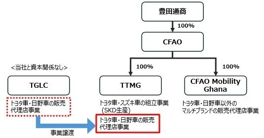 豊田通商のフランス子会社で自動車販売などを手掛ける商社CFAO傘下のTOYOTA TSUSHO MANUFACTURING GHANA(豊田通商・マニュファクチャリング・ガーナ、TTMG)が、2025年12月31日付でトヨタ自動車系のTOYOTA GHANA(トヨタ・ガーナ、TGLC)から同事業を譲り受けた。取得額は開示していない。