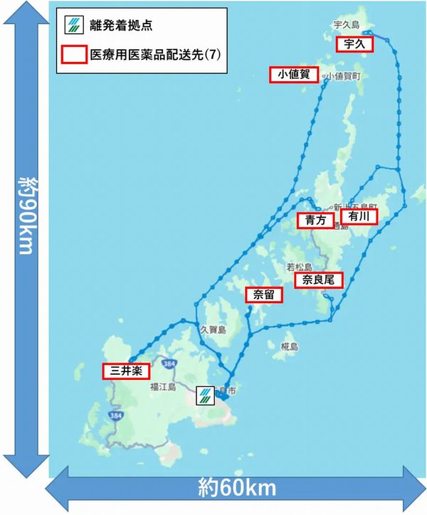 ドローン配送は、そらいいなが事業拠点を置く長崎県五島列島の各薬局と医療機関向けに、医薬品卸会社4社(翔薬、東七、藤村薬品、宮崎温仙堂商店)との契約に基づく形で実施する。