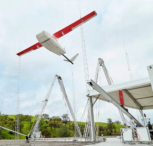 長距離飛行が可能な米Zipline(ジップライン)の固定翼ドローンを使い、事前に飛行許可を取得した指定経路に沿って飛行させる。主に医薬品を配送しているの経路は7種類で、片道最長80kmの距離を約50分で飛行、配送できるという。