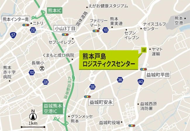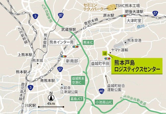 半導体関連工場が集積している菊陽町、大津町、合志市に近く、半導体関連の物流需要取り込みを図る。