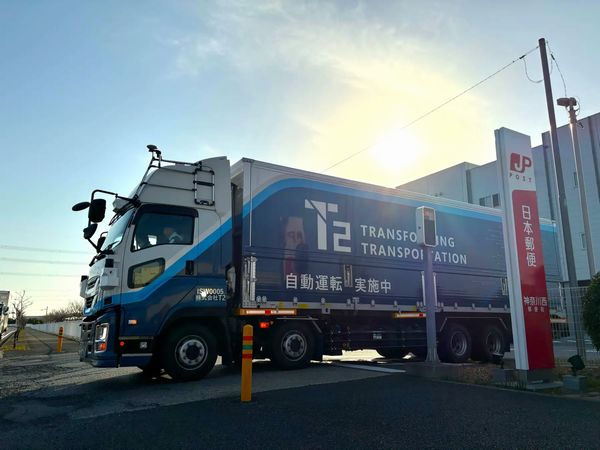 T2は27年度に「レベル4」(特定条件下での完全無人運転)自動運転トラックによる幹線輸送サービスの開始を目指しており、日本郵便は一連の商用運行を通じて得られる成果を基に、レベル4自動運転トラックの導入も検討する。