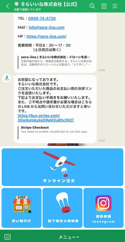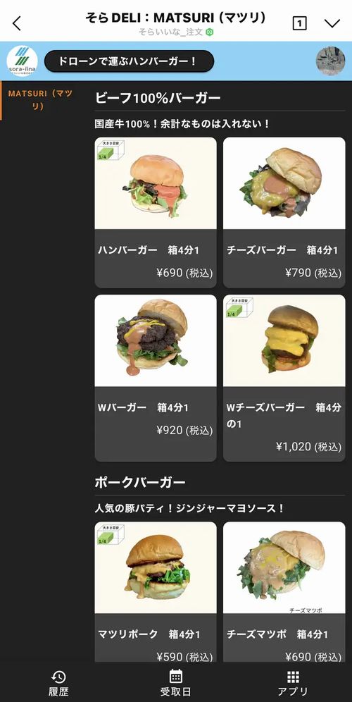 注文はLINE上のミニアプリ「注文くん」から店舗・商品を選択して済ませてもらう。注文の商品を、指定の場所までドローン配送する。