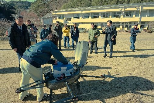 今回は災害への対応、住民サービスの両面を想定して「ドローン配送」を実施した。旧野迫川中学校〜旧今井小学校の片道8.3km、約17分を往復で飛んだ。