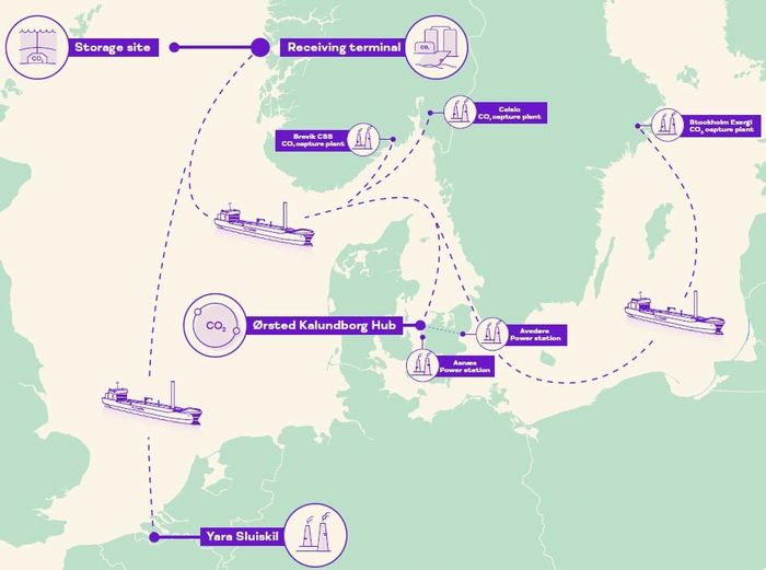 欧州各地で回収したCO2を船でノルウェー西岸のØygarden(オイガーデン)の受け入れ基地へ運び、100kmの海底パイプラインを通じて北海の海底約2600mに恒久的に貯留することを計画している。
