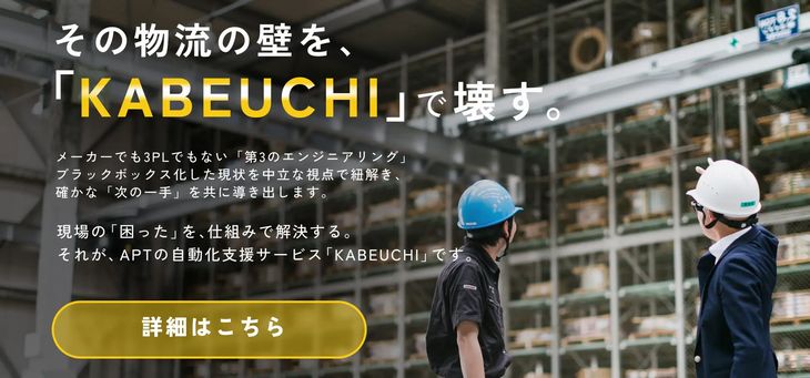 自動倉庫システムや物流ITソリューションを手掛けるAPTは1月30日、物流に関するさまざまな悩みを専門家に無料で相談できる新サービス「KABEUCHI」(カベウチ)の提供を正式に始めたと発表した。特定の製品販売を目的としないフラットな視点でアドバイスすると強調している。