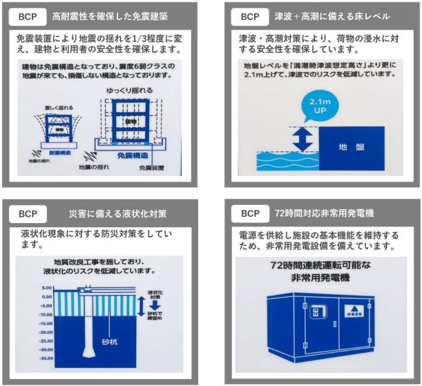 同規模の災害対応型物流拠点の大阪ソリューションセンター(グループの小西医療器)と連動することで医療材料の供給が停滞することがないよう複線化を実現。国内の災害時には大阪ソリューションセンターと拠点間で連動してBCP対策を図る。