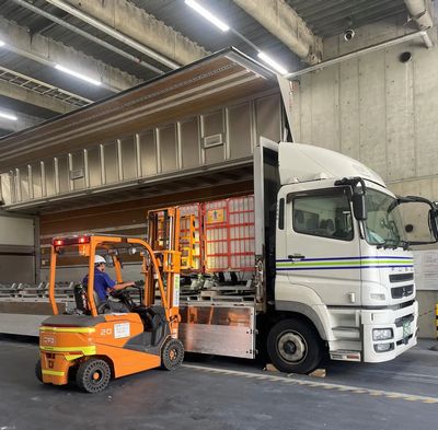 複数メーカーの資材を倉庫内でフロアごとに仕分け後、積み合わせて一括納品。車両台数と到着時間のばらつきを抑え、朝の搬入ラッシュや待機を軽減できると見込む。