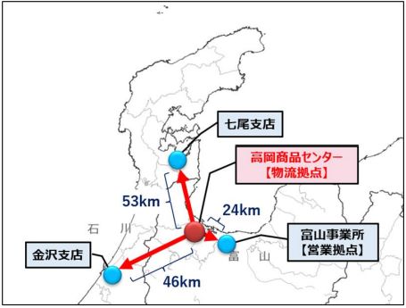 併せて、富山営業部 高岡支店を富山営業部および富山支店と同一事業所内に移転する。富山営業部および富山支店と高岡支店は「富山事業所」に変更し、2支店体制にする。