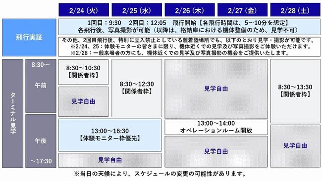 デモフライトは、2025年大阪・関西万博と大阪港バーティポートの公開フライトに使ったものと同型の「SKYDRIVE(SkyDrive式SD-05型)」を使用する。パイロットは搭乗せず、自動制御とリモート操縦による安全を徹底した運航を行う。午前9時半と午後零時5分の2回、無料で実施する。毎日、飛行終了後の機体移動時に写真撮影の機会を設ける予定。
