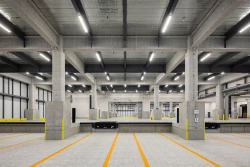 外壁には金属断熱サンドイッチパネル、床荷重は1.5t/㎡(各階2.5tフォークリフト対応可)、有効高さは各階5.5m以上を確保している。昇降設備として荷物用エレベーター(積載荷重3.5t、45m/min)2基、垂直搬送機1基、ドックレベラー2基を実装済み。
