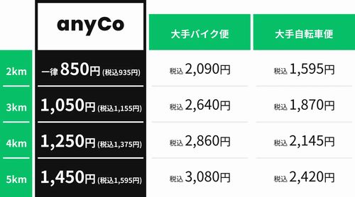 エニキャリは2月9日、最短30分で個人宅や店舗などに荷物を届ける法人向け近距離配送サービス「anyCo Biz」(エニコビズ)を刷新し、新たにUber Eats Japanと協業した新サービス「anyCo Biz Delivered with Uber Eats」(エニコビズ・デリバード・ウィズ・ウーバーイーツ)を同日開始したと発表した。