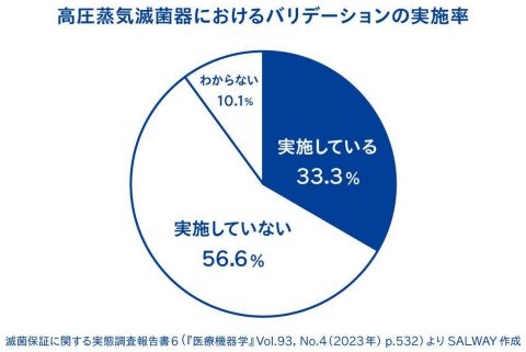 ただ、全国の医療機関を対象とした実態調査によると、滅菌に最もよく使用される高圧蒸気滅菌器で、バリデーションを実施していると回答した施設はわずか33%にとどまり、滅菌の保証に疑問符が付く実態という。