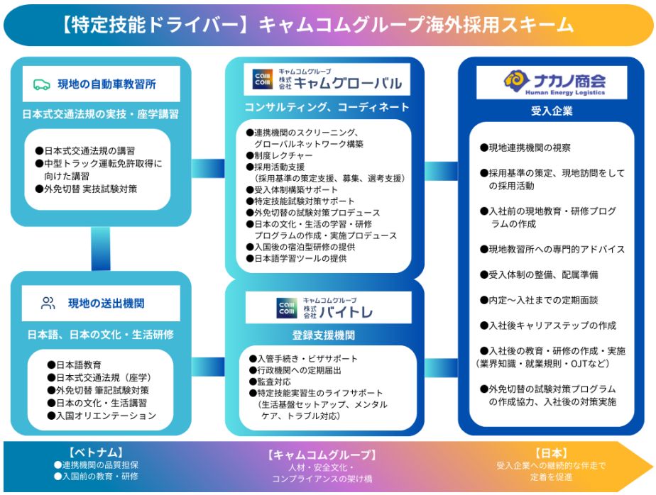 特定技能ドライバーに関するキャムコムグループの海外採用・育成・定着支援スキーム