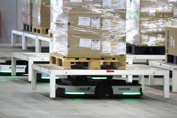 全日本空輸(ANA)グループのANA Cargoは2月19日、成田空港でANAグループが運営している貨物上屋「ANA Cargo Base+」(エーエヌエー・カーゴ・ベース・プラス)内で活用しているAGV(無人搬送ロボット)をメディアに公開した。