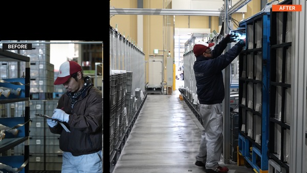 日本運輸の倉庫も同様に、サプライヤー各社から届く部品のピッキング作業の多くが、人手と属人的な判断・作業に依存していたため、将来の人手不足深刻化をにらみ、Mujinの協力を得て重筋作業の自動化と変動性が高く属人化しやすい作業のデジタル化に乗り出した。