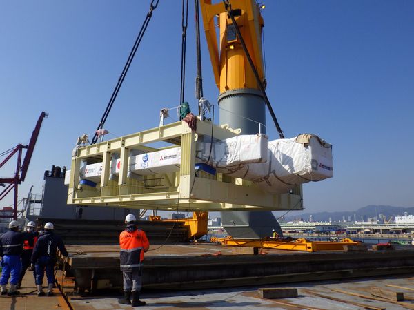 そのため重量物船のクレーン、フローティングクレーンでの積み降ろしなど一つ一つの作業を、時間をかけて丁寧に実施した。また、船内でのラッシング(固縛)ベルトも通常より本数を増やし、万全を期した。