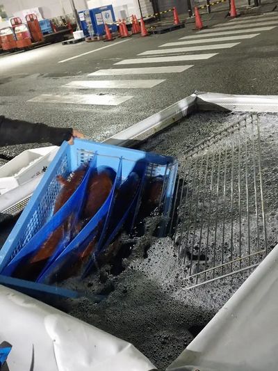 魚活ボックスへの積み込み
